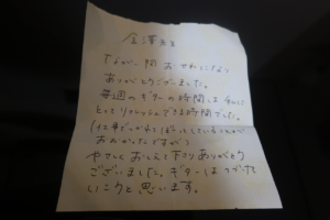 仕事の環境変化で残念ながらこの度退会されますが、会話のほかにご丁寧にメッセージ文をいただきました!